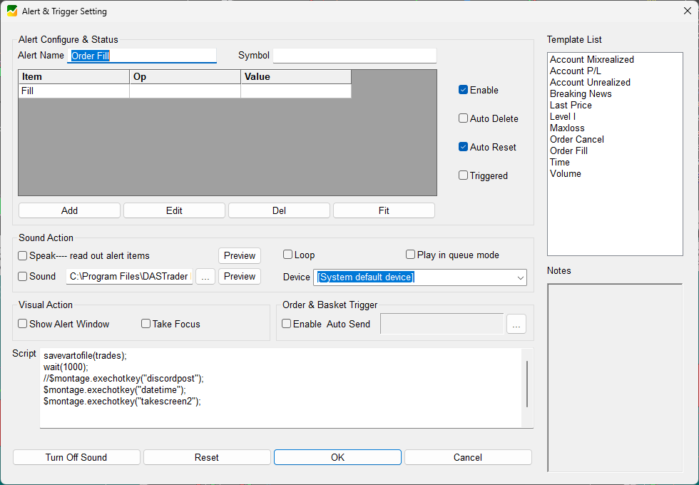where name represents the name of the file to be saved. The file is saved into the DAS Trader Pro installation folder and the format of the file is like this